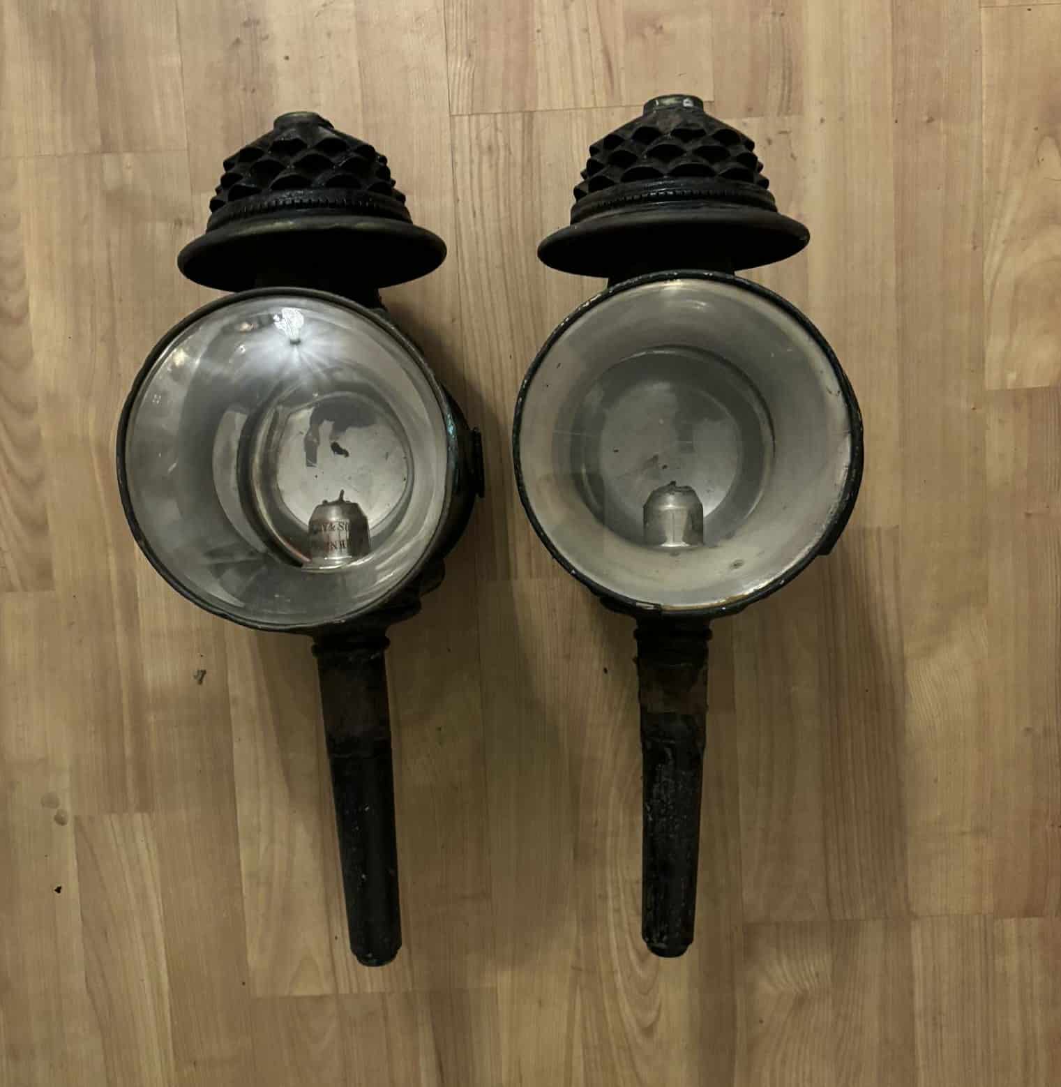 Vognlygter – Antikke, H: 46 cm, D: 16 cm, B: 12 cm, pr. sæt